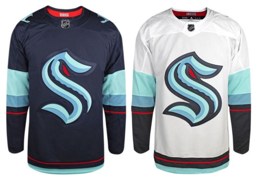 Putting their lackluster expansion draft aside, the Kraken won the league over with their wacky name and beautiful jerseys in their inaugural season. Going full in with the oceanic theme, the franchise utilized multiple shades of blue for their base and accent colors officially called Shadow Blue, Boundless Blue, Ice Blue and the main color being Deep Sea Blue. The red’s hex code is Red Alert, which seems fitting for the Kraken.