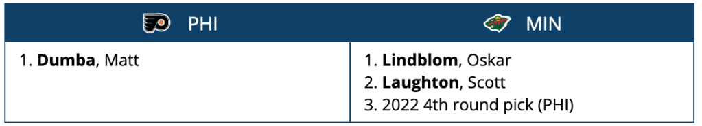 The Flyers will be in the market for a right-handed defenseman and have been linked to Dumba in the past. The Wild’s cap situation is about to get pretty interesting with the buyouts of Zach Parise and Ryan Suter costing them $12.7 million in dead cap next season.. While Laughton and Lindblom’s cap hit ($3 million each) and Matt Dumba’s cap ($6 million) equal out, it gives the Wild some flexibility and some desperately needed depth at forward. Matt Dumba turns 28 in July.