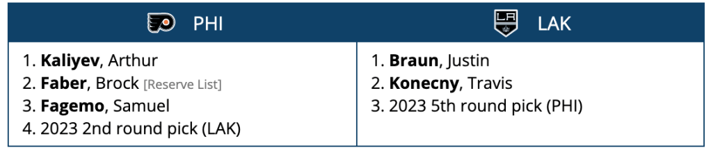 This scenario is swung fairly heavy in the Flyers’ favor, but if the Kings are ready to compete, two established players may be better than a handful of prospects.