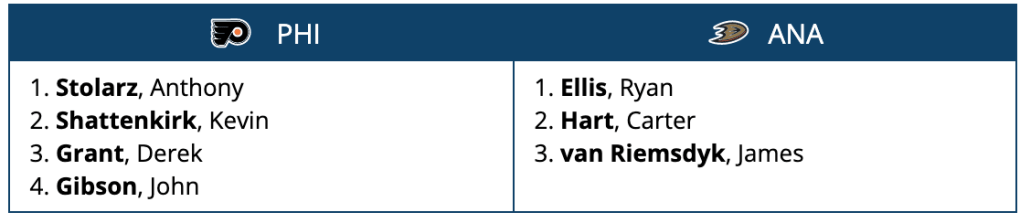 John Gibson, 28, has five years left at $6.4 million, and was one of the league’s better goalies before the Ducks rebuild tanked his stats. Familiar face Anthony Stolarz has found his footing at the NHL level in Anaheim this season with a 2.62 goals against average and .919 save percentage. He’s got one year left at a palatable $925,000.