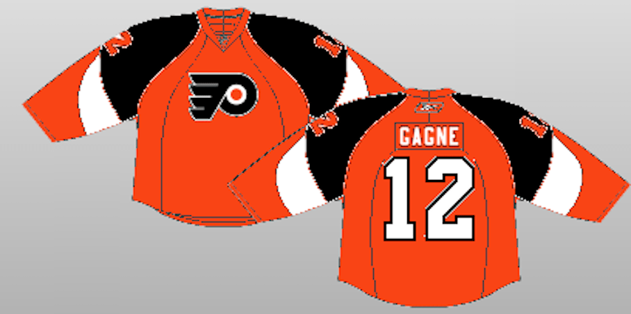This idea is by far my favorite and I don’t even have to subject you to my photoshop skills, because the Phantoms already wore jerseys very similar to this during their 2011 Outdoor Classic. They are inverted jerseys to that which the Flyers would wear a year later during the 2012 Winter Classic. They have a perfect vintage look yet are pleasing to look at and also fit the reverse retro gimmick. These jerseys would sell by the metric ass ton if they went this route, hell, I’d already have a dozen pre-ordered.