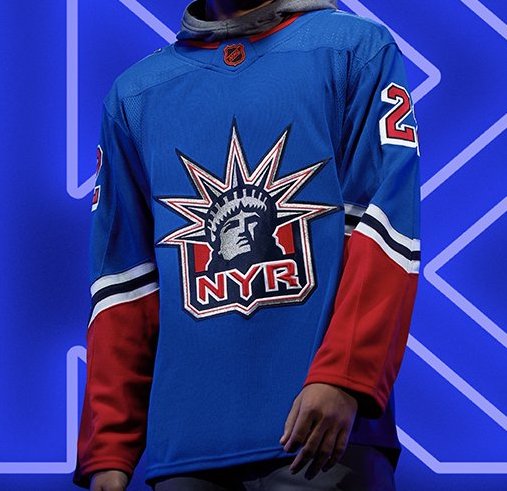 The Rangers opted to once again bring back Lady Liberty, but use a much more refreshing blue this time. It’s always hard to hate the crest, but freshening up the style of the jerseys themselves would’ve gone a long way.