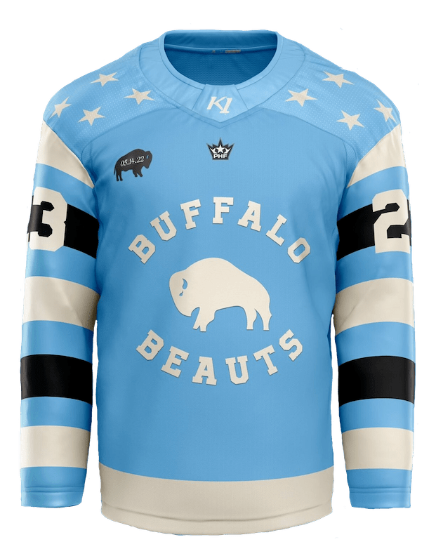 The Beauts jerseys that were made for their 2022 Buffalo Believes Classic outdoor game became an immediate hit, and they return as the alternates for the 2022-23 season. Not only are they the best jerseys in the PHF, but they are high atop the list for greatest hockey jerseys of all time. The powder blue and cream are a phenomenal mix, the black stripes on the sleeves are a great eye-popping feature, and the alternate logo is just classically cool.