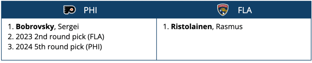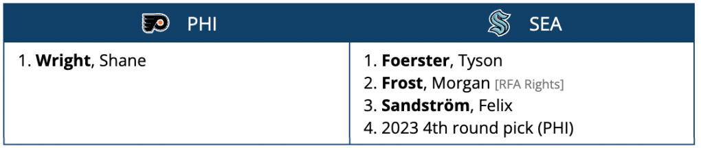 The Flyers would also get Florida’s second rounder in 2023 and their 2024 fifth, originally sent to Florida in the Giroux trade, returned to them in this scenario.