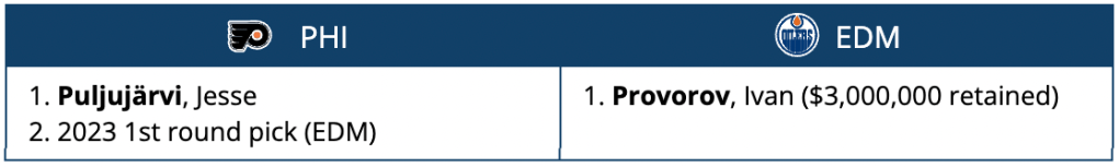 The Flyers get a worthwhile replacement for Provorov on the left side of the defense as well as a RHD prospect, something they’re internally short on these days.