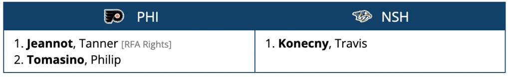 This trade to Nashville gives the Flyers two young roster players right now, but It’s probably the riskiest deal in this piece. There’s still plenty of potential left for both Nashville players, but the sands of time are quickly running out to prove they can be relied upon NHL caliber forwards.