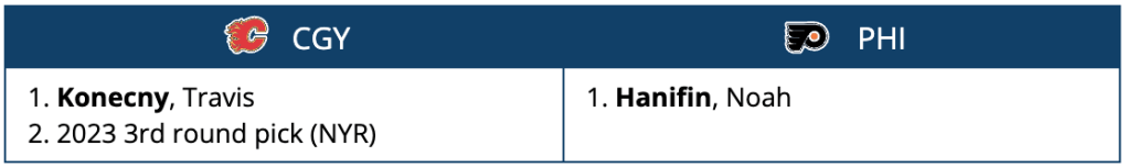 The Flyers also get their own second round pick back as well as Buffalo’s in 2024.