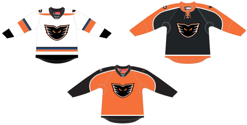 The Phantoms already had one of the more creative alternate jersey concepts in place with their “blackout” setup, an all-black uniform with just minor orange highlights and no white on the entire kit. They’ve been in the rotation for a couple years and are a massive hit with the fans.