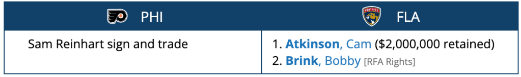The Flyers would retain about one-third of the last year of Atkinson’s cap, and give Florida the rights to pending restricted free agent Bobby Brink.