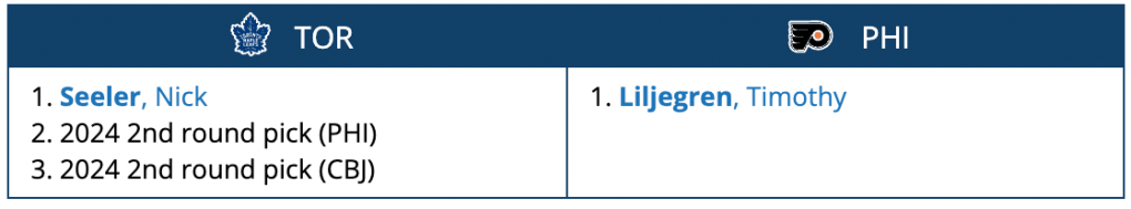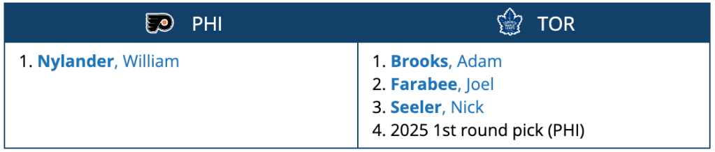 The Flyers get a legitimate upgrade at wing (or down the middle), and the Leafs can spread the wealth on the roster with some depth.