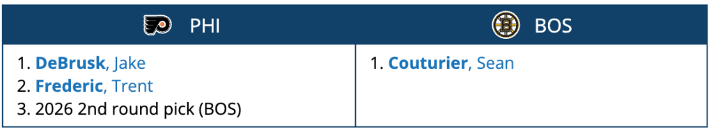 The Flyers offload Couturier and his contract, the Bruins get a capable (and seemingly healthy) replacement for Patrice Bergeron, and Philly gets two NHL forwards on short-term contracts plus a second round pick in a few years.