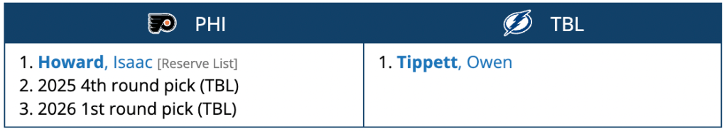 The Flyers get a new goaltender (who is not under criminal investigation) that can easily take the backup role if Ersson passes him by, not to mention two first round picks, a prospect and two NHL caliber young players.