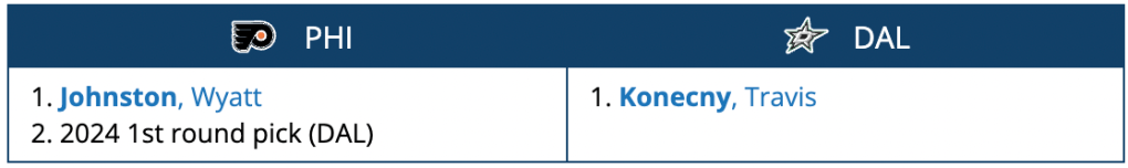 This one’s simple, the Stars want a Cup and give up one of the better young forwards in the league plus an additional 2024 first round pick for a top forward like Konecny to win now.