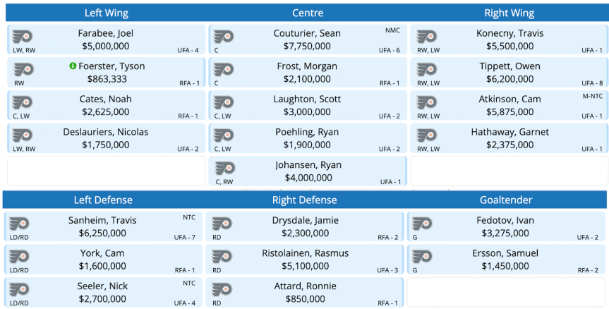 LHD is easily the most overcrowded position in the organization, but there are very few quality options to choose from. With the addition of 21-year-old right-handed defenseman Jamie Drysdale, whom the Flyers are going to try and turn into their top pair righty, they could use a little bit of star power on the left side to insulate their young star for years to come.
