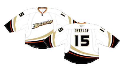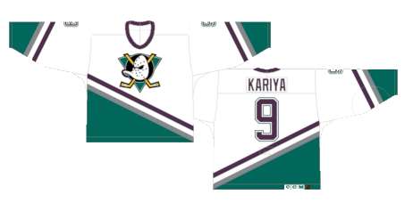 These were the white version of the 1997 alternates. While still ugly in their own right, the white is much easier on the eyes than the full jade. The design on the sleeves and shoulder stayed the same as the other alternate. These jerseys outlived the jade by a full season, when they were dropped from the rotation in 2000, which marked the second time the Ducks dropped an alternate jersey entirely.