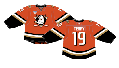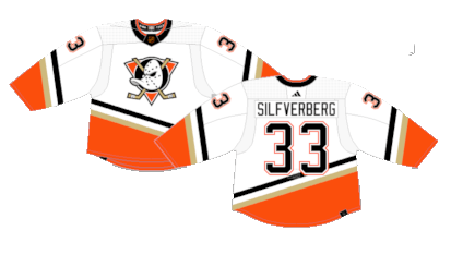 In a redesigned look from the 2014 Stadium Series, the Ducks deploy an orange alternate for the first time, and (with the exception of the 20th anniversary one-offs worn in 2013) it marks the first time the original Mighty Ducks logo was brought back, albeit recolored to fit their new scheme.