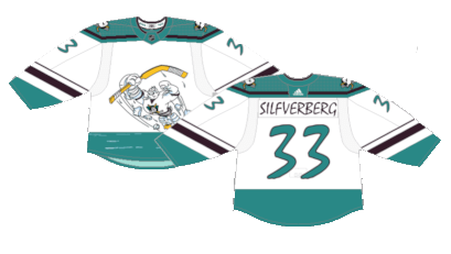 Ripped right from the silver screen, the white version of the Mighty Ducks jerseys are perfection. A unique design that applies the best use of the color scheme with a slightly cleaner look than the eggplant version. Sometimes, the beauty really is in the simplicity.
