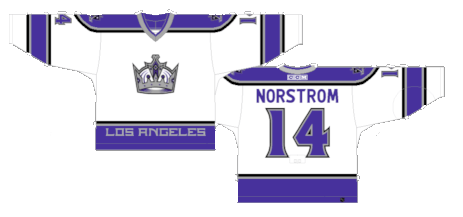 When the Kings joined the league in 1967 they brought the purple (officially forum blue) and gold scheme to the NHL, borrowed from their arena mates the LA Lakers of the NBA. The jerseys would return for Heritage night one-offs in the early 2010s, but probably should’ve just remained lost to history.