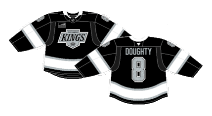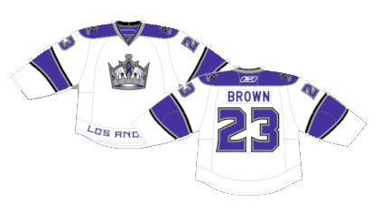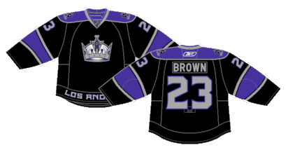 That shoulder-to-sleeve yoke design is far more recognizable as the Flyers’ main look around the same time, but debuted two years after the Kings wore these for the first time. The color scheme still isn’t great, but considering there’s actually some design elements here, they’re better than the original attempt at the forum blue jerseys.