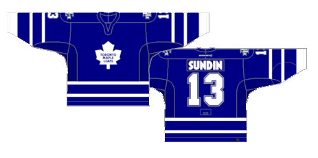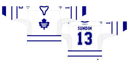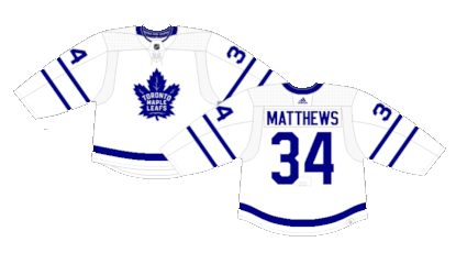 This is the particular version of Leafs jersey that I grew up with, so it holds a special place amongst the sea of blue and white. The silver outlines on the numbers with that wacky font of the nameplates and the stylized deep V of the collar make the jersey stand out even if the striping is rather vanilla.