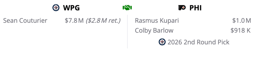 The problem? The Flyers clear clear $5 million, but would have to retain $2.8 million of Couturier’s deal until 2030.