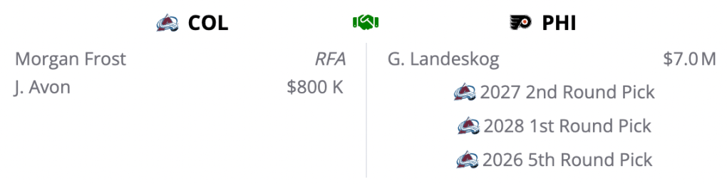 The Flyers get a first and second round pick, albeit in 2028 and 2027 respectively, for taking the risk on Landeskog’s contract now.