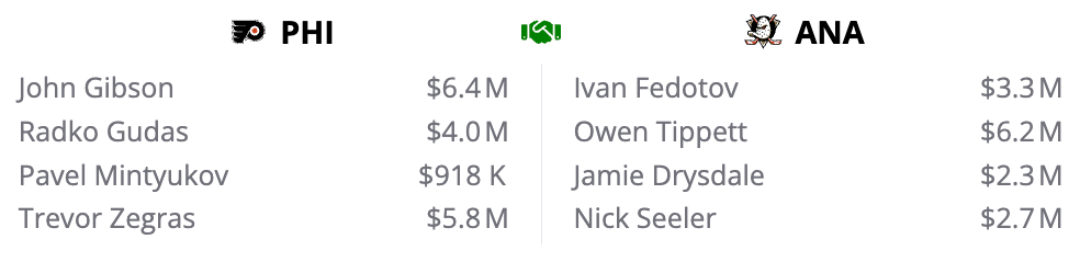 For what it’s worth, there’s a zero percent chance the Ducks would make this trade, although outside of Gibson and the potential of Mintyukov, there’s not an overabundance of sure-fired talent on Anaheim’s end either.
