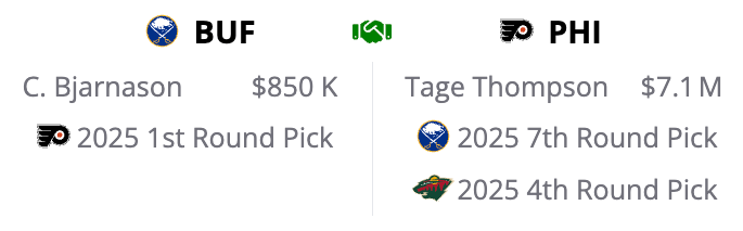 The Flyers would be giving up picks 22, 36 and 68 in 2025.