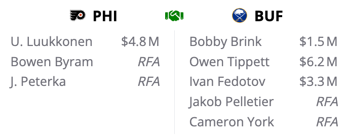 This is a big, probably uneven trade, but essentially the Flyers cut the excess fat on their roster in the name of adding additions in key spots. The Sabres get an influx on new bodies to freshen their roster.