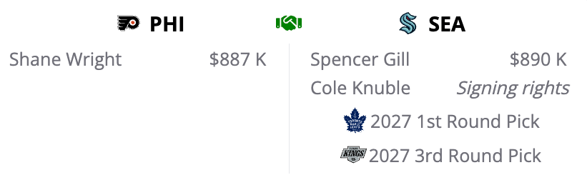 The Flyers give up one mediocre prospect and one who may not sign at all, plus first and third round picks in the 2027 draft to add a young, hopeful pillar at center.