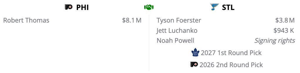 There are many Thomas-centered trades out there right now, and this is one of the more realistic deals when it comes to what the Flyers will likely have to give up in order to get him.