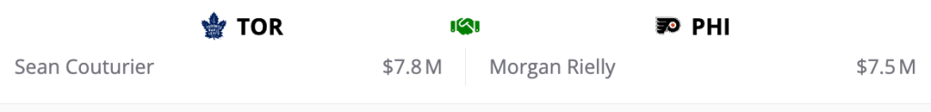 Realistically, the only way the Flyers are getting out of Sean Couturier’s contract is to swap him for another player that is of equal contract problems. Reilly does have a full no-movement clause (as does Couturier), but he’s one of the more likely names the Leafs have when it comes to overhauling their underwhelming roster.